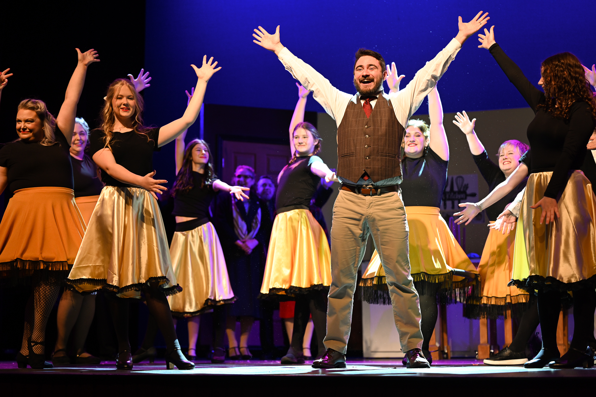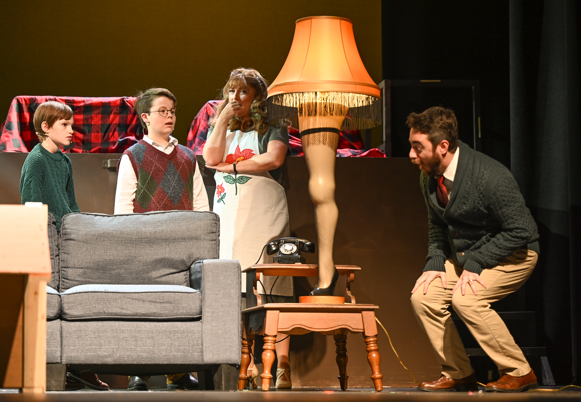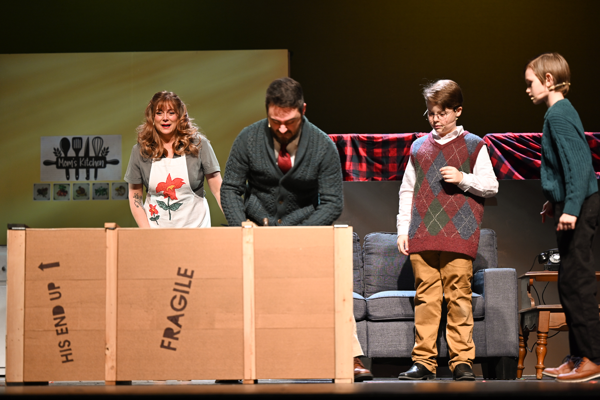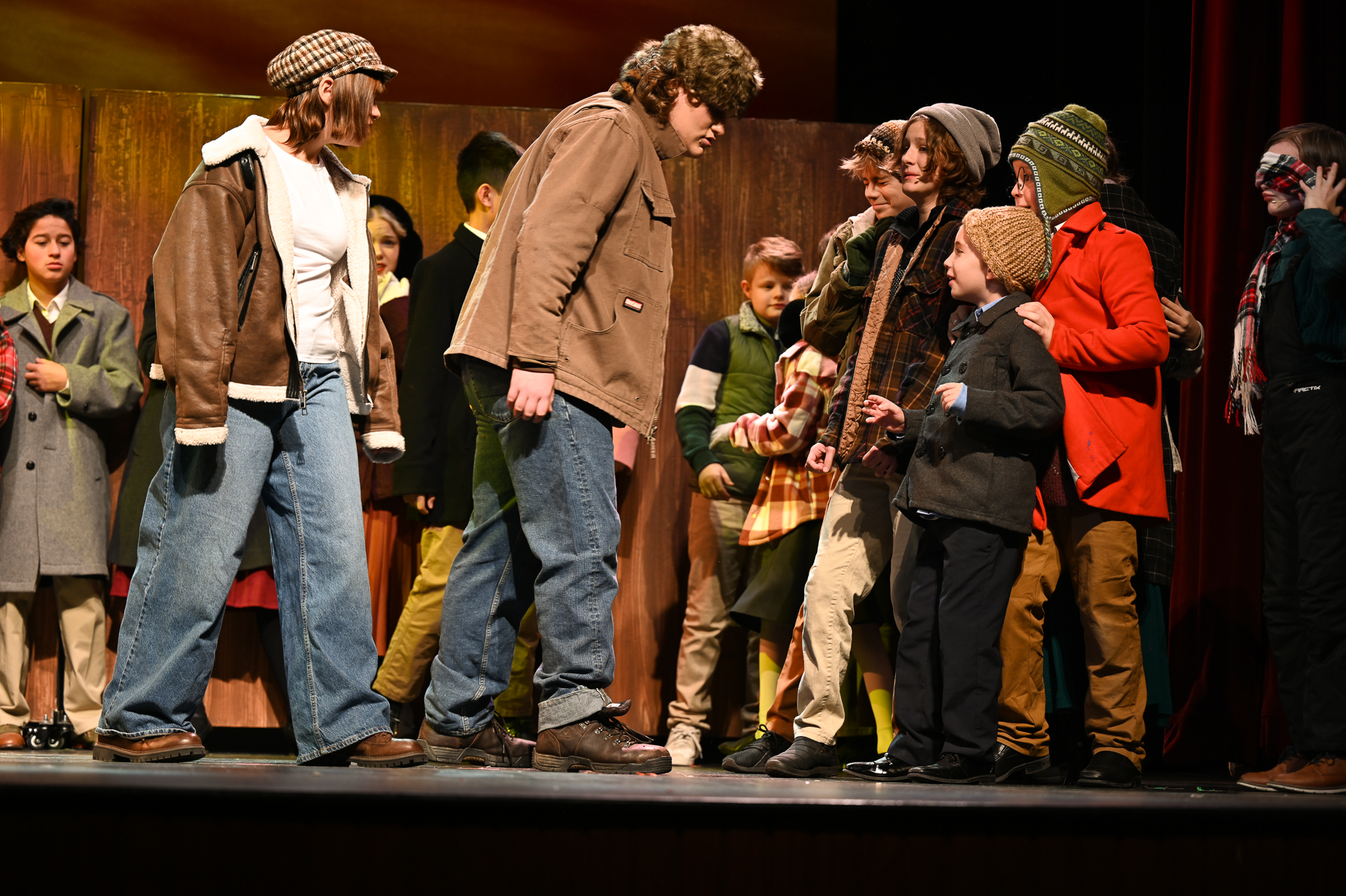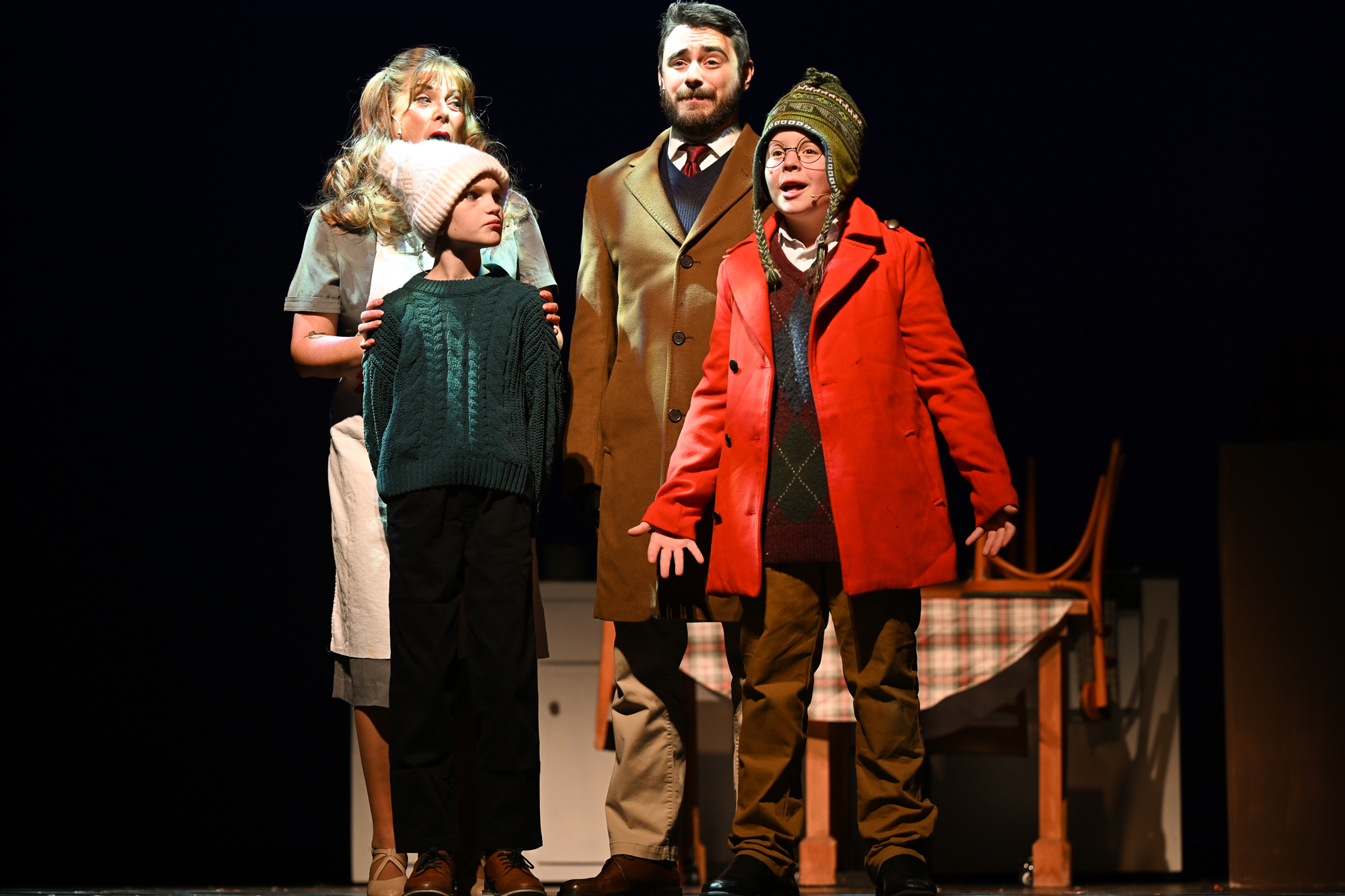 Brittan Posey (Jean Sheperd/Narrator) Charlie Schwallie-deTar (Ralphie) Kevin Kunz (The Old Man) Jan McGarry (Mother) Wilbur Walter-Groll (Randy) Melanie Tullett (Miss Shields) Al Morar (Santa) Ro Remnant (Flick) Lochlin Seurkamp (Schwartz) Alice Riggins (Esther Jane) Cassie Saner (Mary Beth) Leo Grose (Grover Dill) Jacob Varner (Scut Farkus) Children Ensemble (Audrey Morar, Calvin Epley, Clement Liu, Eden Andrews, Edwin Young-Ihling, Felecia Johnson-Flores, Hadley Bell, Isabelle Dellinger, Jasmine Levering, JoJo Bew, Jordyn Higgins, Jude Haviland Colagiovanni, Luke Hashman, Millie Tullett, Nate Hockman, Quinn Duquette, Reagan James, Roland Seurkamp, Stella Bell) Teen Ensemble (Briella Shay, Delaney Cochran, Katya Dobrynin, Lilian Ray, Lillian Morar, Lola Cornett, Lucy Dodd, Mikaela Higgins, Piper Smeck, Raphael Johnson-Flores) Adult Ensemble (Andrea Thompson-Hashman, Bette Morar, Carolyn Harding, Gabrielle Blackwood Johnston, Joanna Mansfield-Duquette, Joe Balding, Katie Chaney, Megan Cameron, Michael Dailey, Nic Joseph Saul, Rita Preston, Samantha Kunz, Stuart Yaden) |