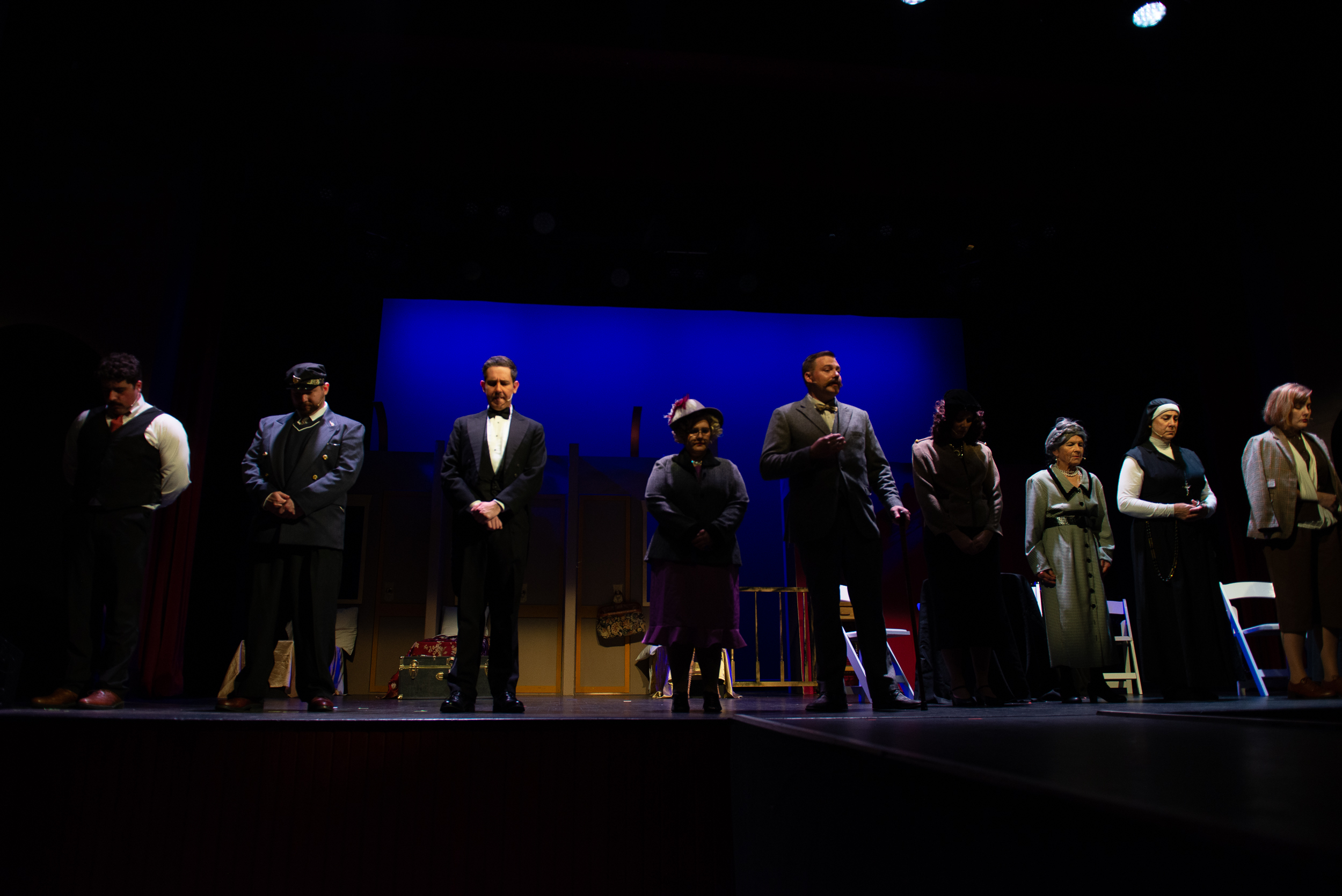 Nathan Becker (Hercule Poirot) Brittan Posey (Monsieur Bouc) Gabrielle Johnston (Mary Debenham) Cam Hess (Hector MacQueen) Nicolas Proctor (Michel The Conductor) Celeste Parsons (Princess Dragomiroff) Paula Maiden (Greta Ohlsson) Jessica Holliday (Countess Andreynl) Hannah Sickles (Helen Hubbard) Kevin Kunz (Colonel Arbuthnot) James McGee-Moore (Samuel Ratchett) Sandy Russell (Head Waiter) |