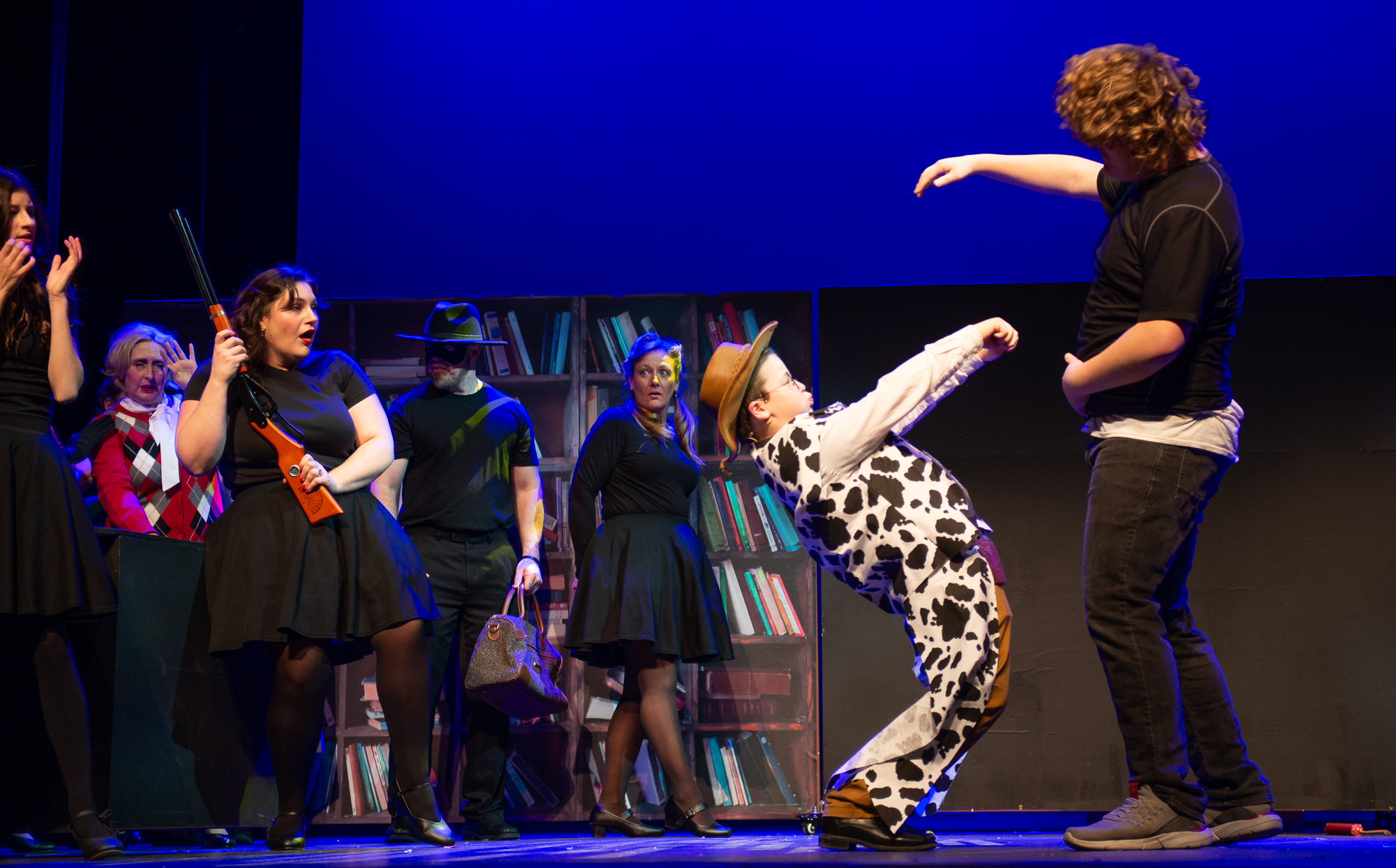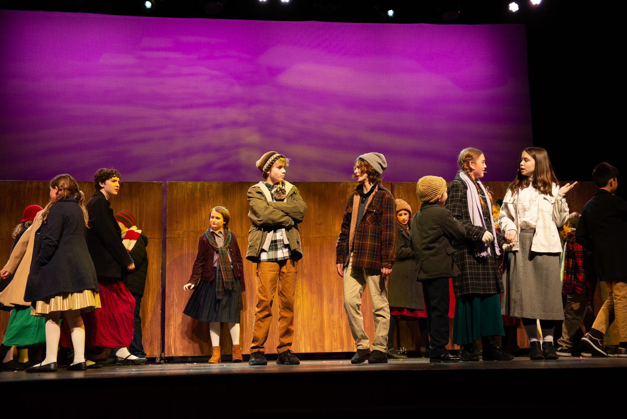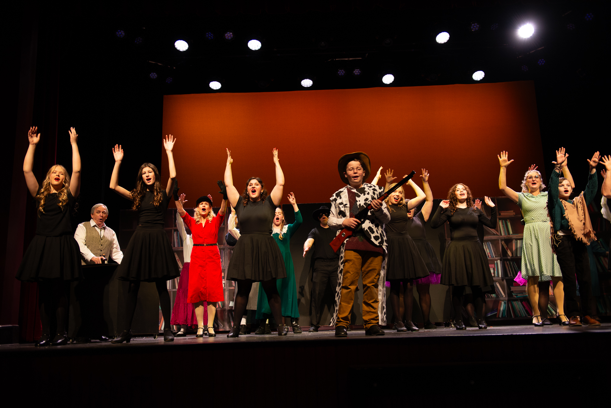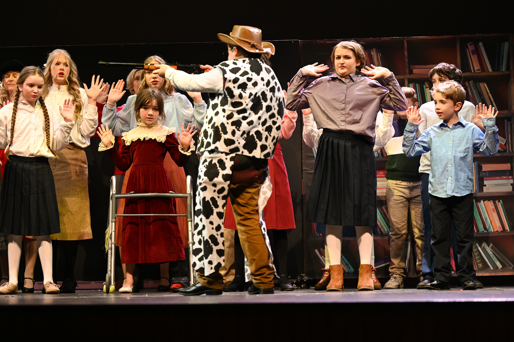 Brittan Posey (Jean Sheperd/Narrator) Charlie Schwallie-deTar (Ralphie) Kevin Kunz (The Old Man) Jan McGarry (Mother) Wilbur Walter-Groll (Randy) Melanie Tullett (Miss Shields) Al Morar (Santa) Ro Remnant (Flick) Lochlin Seurkamp (Schwartz) Alice Riggins (Esther Jane) Cassie Saner (Mary Beth) Leo Grose (Grover Dill) Jacob Varner (Scut Farkus) Children Ensemble (Audrey Morar, Calvin Epley, Clement Liu, Eden Andrews, Edwin Young-Ihling, Felecia Johnson-Flores, Hadley Bell, Isabelle Dellinger, Jasmine Levering, JoJo Bew, Jordyn Higgins, Jude Haviland Colagiovanni, Luke Hashman, Millie Tullett, Nate Hockman, Quinn Duquette, Reagan James, Roland Seurkamp, Stella Bell) Teen Ensemble (Briella Shay, Delaney Cochran, Katya Dobrynin, Lilian Ray, Lillian Morar, Lola Cornett, Lucy Dodd, Mikaela Higgins, Piper Smeck, Raphael Johnson-Flores) Adult Ensemble (Andrea Thompson-Hashman, Bette Morar, Carolyn Harding, Gabrielle Blackwood Johnston, Joanna Mansfield-Duquette, Joe Balding, Katie Chaney, Megan Cameron, Michael Dailey, Nic Joseph Saul, Rita Preston, Samantha Kunz, Stuart Yaden) |