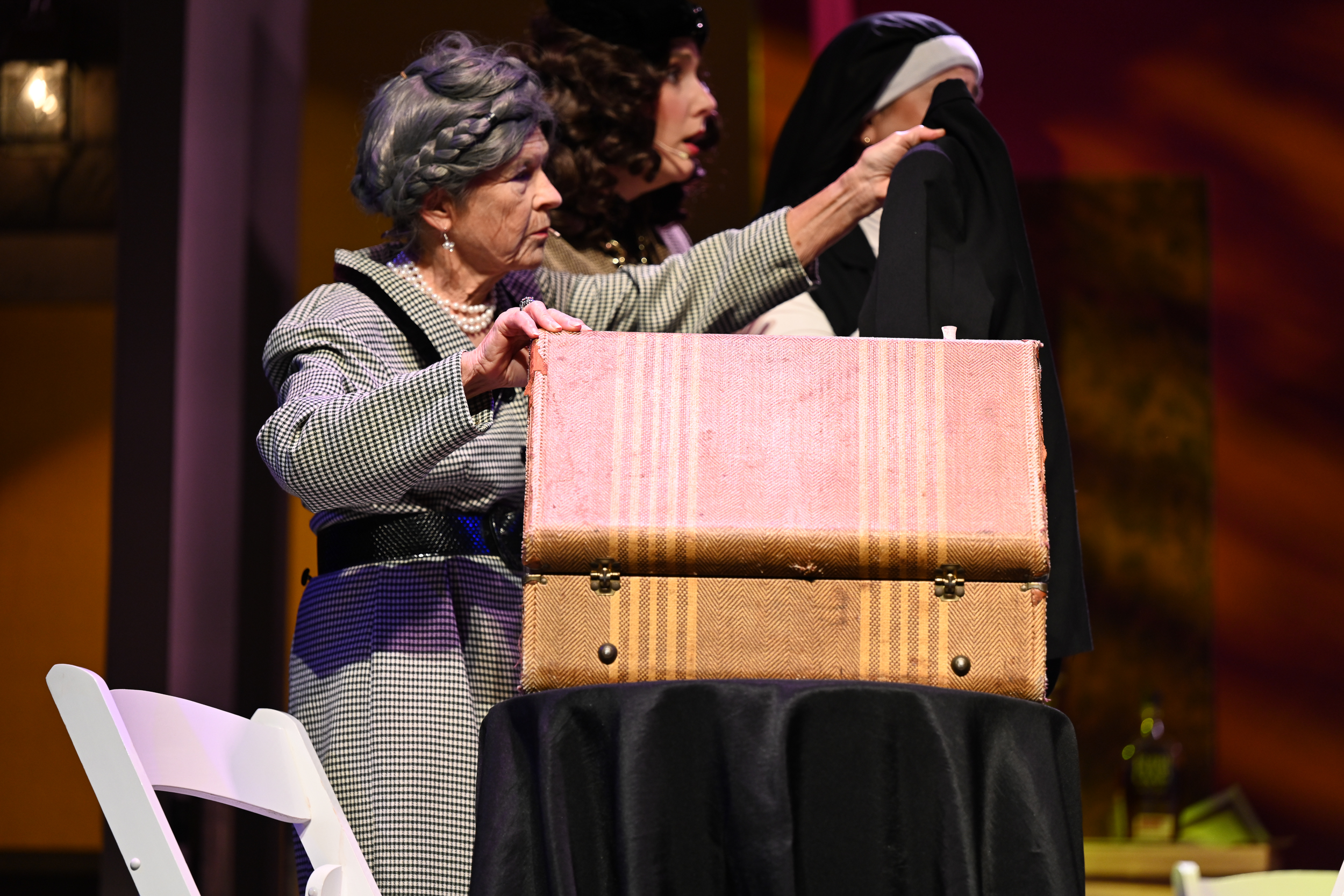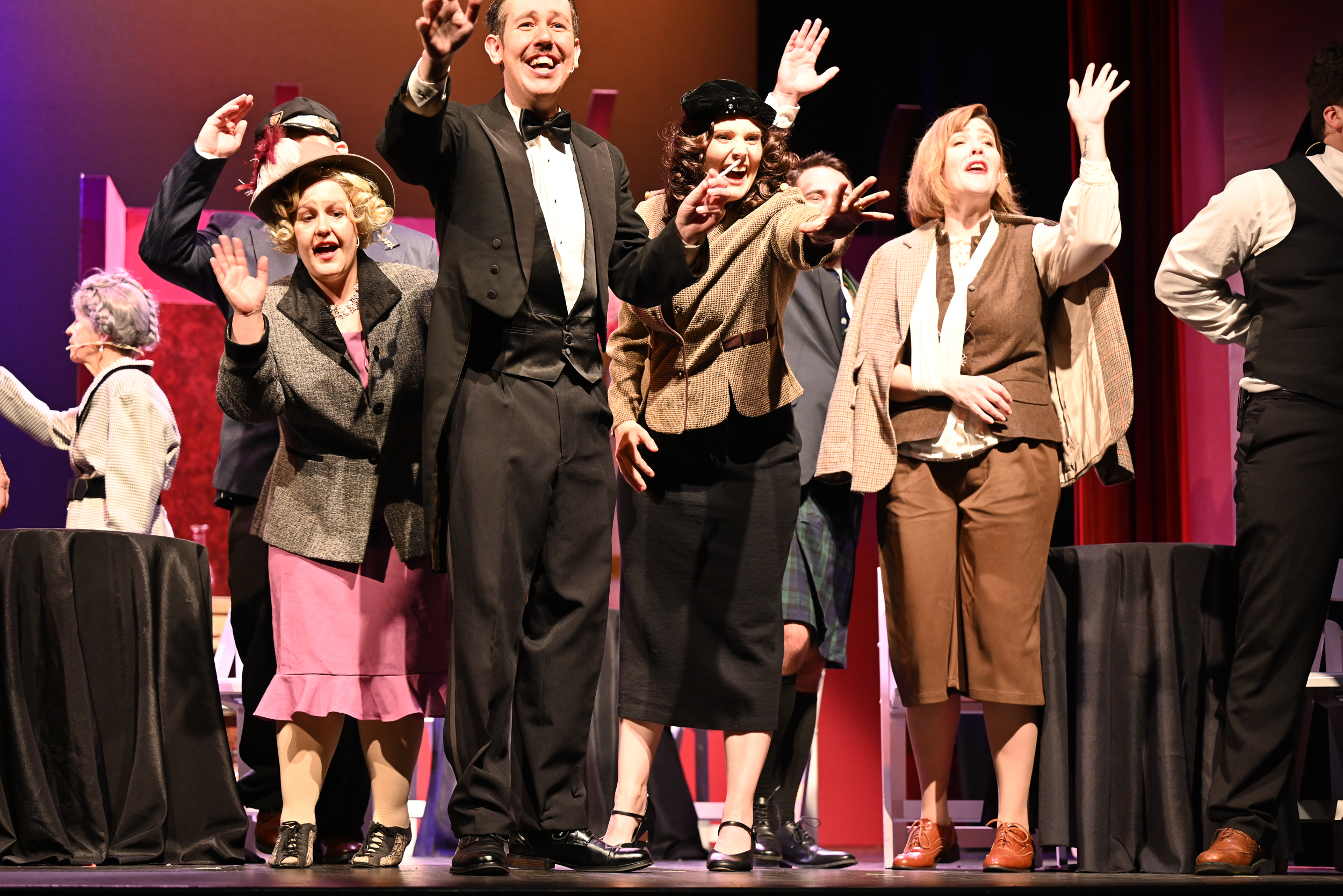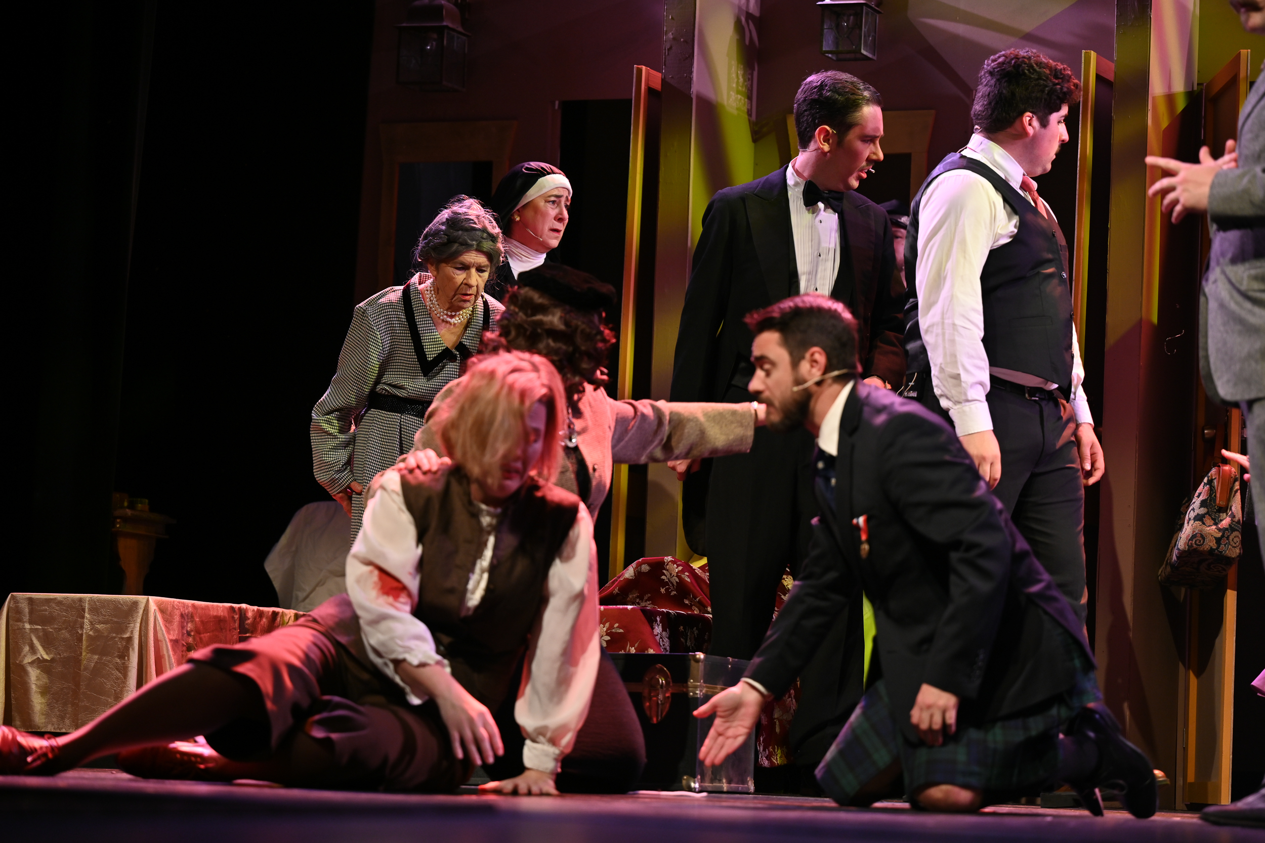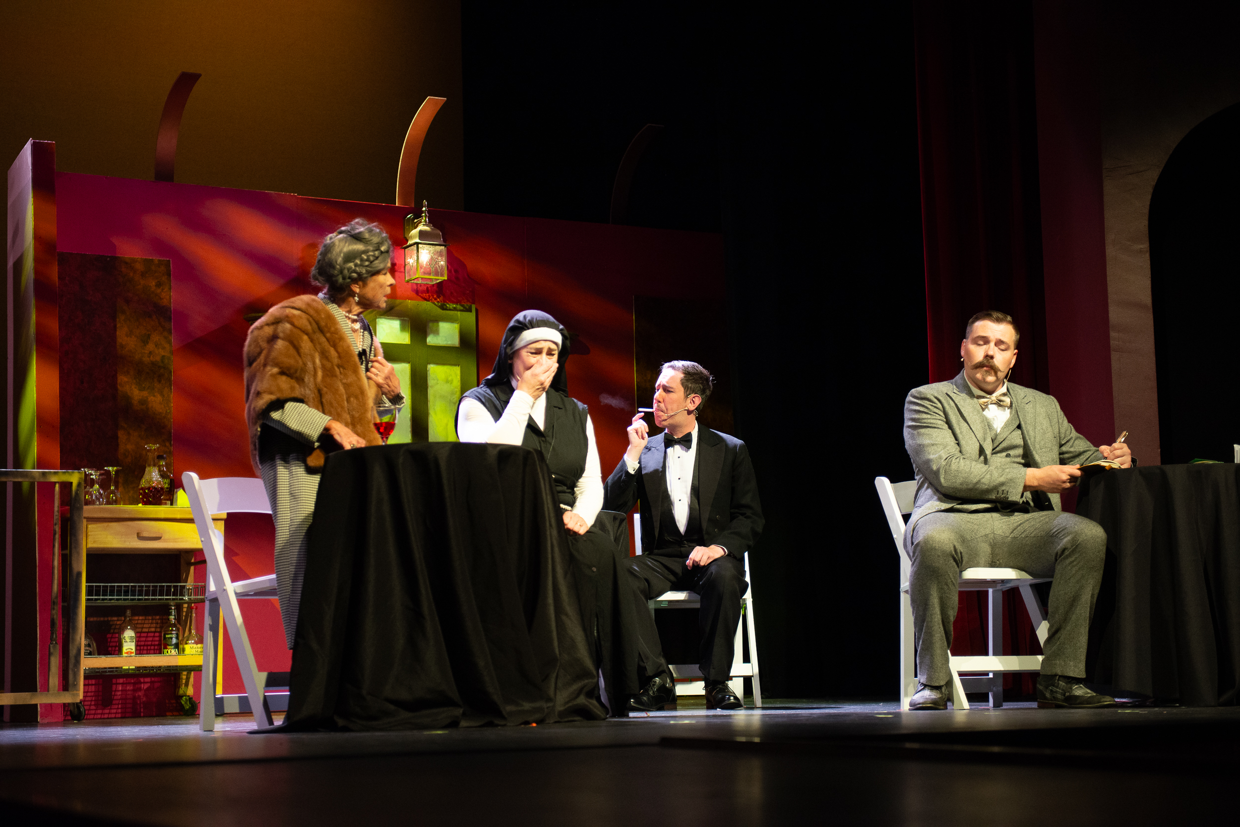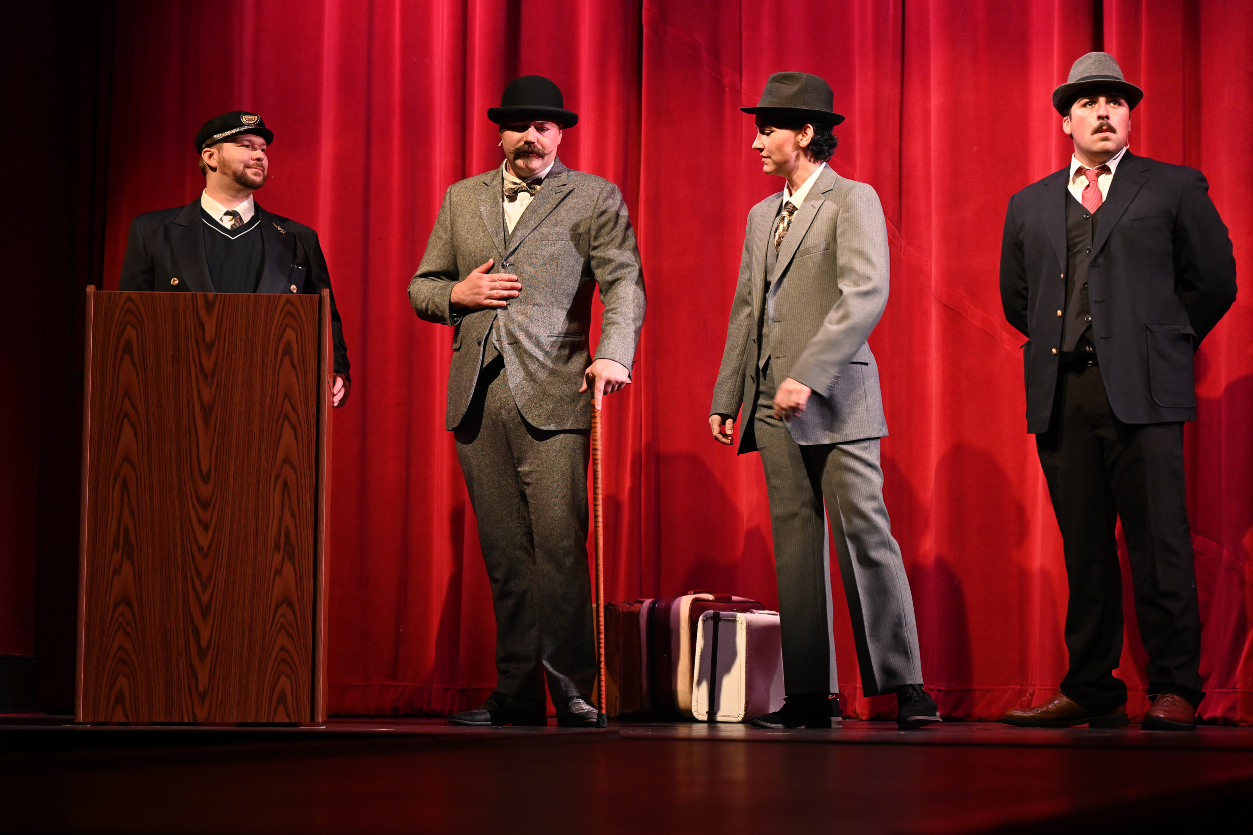 Nathan Becker (Hercule Poirot) Brittan Posey (Monsieur Bouc) Gabrielle Johnston (Mary Debenham) Cam Hess (Hector MacQueen) Nicolas Proctor (Michel The Conductor) Celeste Parsons (Princess Dragomiroff) Paula Maiden (Greta Ohlsson) Jessica Holliday (Countess Andreynl) Hannah Sickles (Helen Hubbard) Kevin Kunz (Colonel Arbuthnot) James McGee-Moore (Samuel Ratchett) Sandy Russell (Head Waiter) |